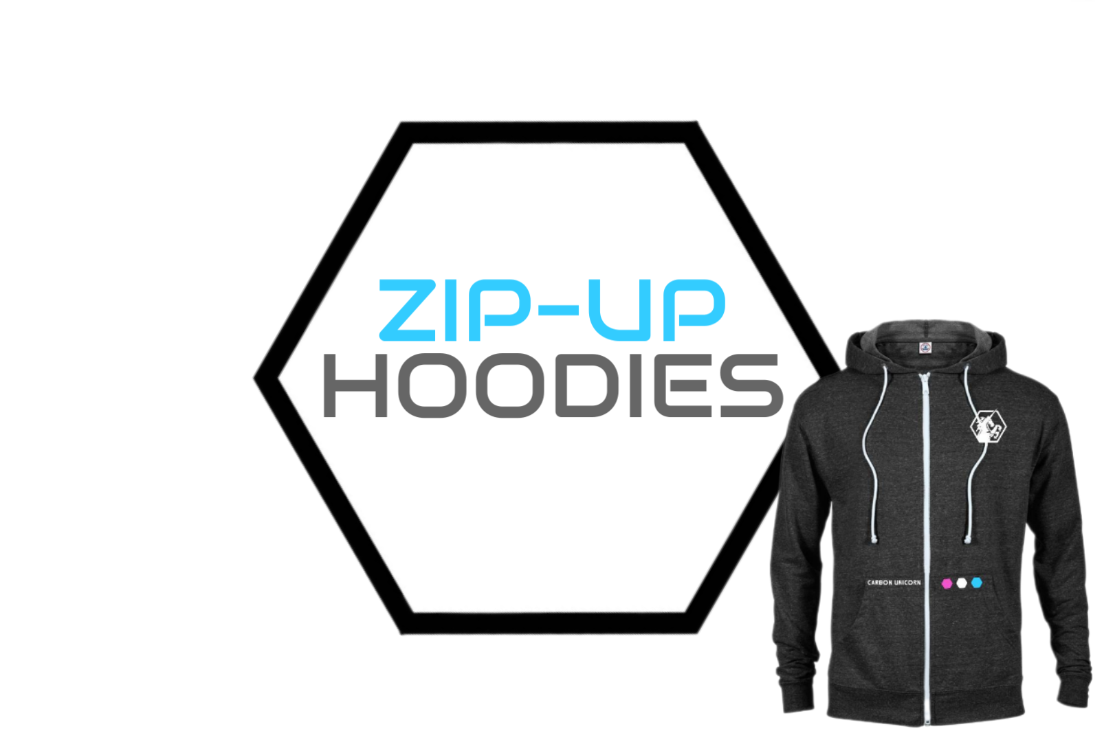 Our Black Snow Zip-Up Hoodies are comfy and unique. Besides dawning the mark of the Carbon Unicorn on the chest, the name and three elements of CU are displayed above the pockets! GROW YOU-BE YOU-PROTECT YOU!